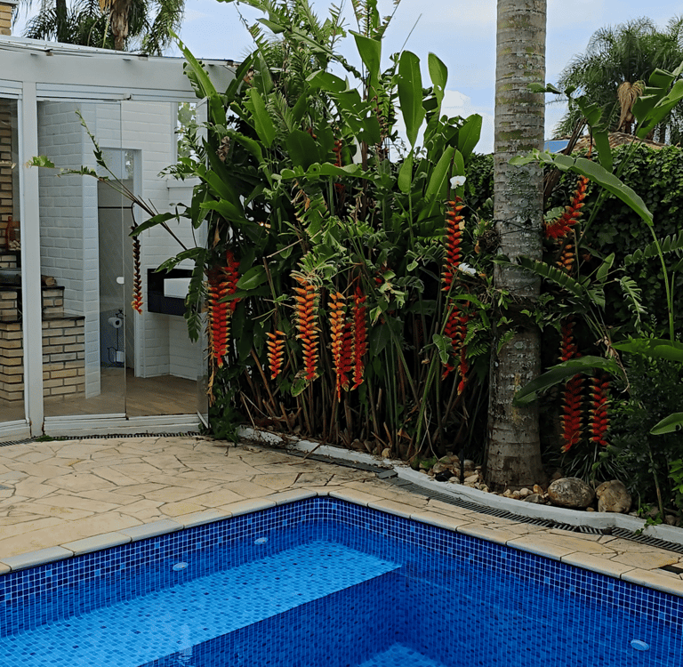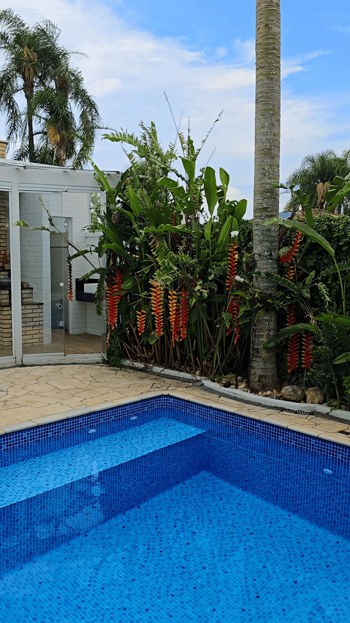 Lazer Privativo: Piscina exclusiva com infraestrutura completa e banheiro de apoio.
